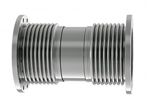 Universal Expansion Joints consist of two bellows elements joined together by a common spool piece so it is also called as Double Bellows Expansion Joint or Universal Bellows. An Universal Expansion Joint is generally used where more lateral movement is to be absorbed which is beyond the capacity of a single Axial Expansion Joint and when there is a limitation on the amount of lateral forces allowed by the connecting pipe system. The products are capable of absorbing axial movement, lateral deflection and angular rotation or any combination of these. The amount of lateral deflection that can be absorbed by a double bellows expansion joint is directly proportional to the length of the spool piece between the two bellows elements. The amount of axial movement and angular rotation an universal expansion joint can absorbs depends on the characteristic of the elements such as ply thickness, number of plies, number of convolutions, pitch of convolutions, depth of convolutions, material of construction of the bellows elements etc. When internally pressurized, universal bellows exerts a thrust force on the anchors adjacent equipments as a result of pressure. In this type of expansion joint force is equal to the mean effective area of the bellows times the internal pressure. As there are no tie rods in this expansion joints to absorb the pressure thrust it must be entirely absorbed by the anchors. So the anchors must be sufficiently designed to withstand the full thrust forces. Due to lack of tie rods and the nature of these joints to impose the thrust loads on the anchors, double expansion joints are mainly restricted to low or moderate operating pressure applications.